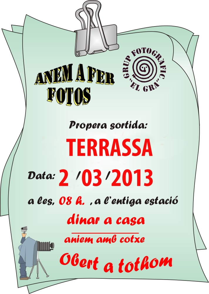 DISSABTE 02 de març a les 8 h ven fer la SORTIDA FOTOGRÀFICA a Terrassa.